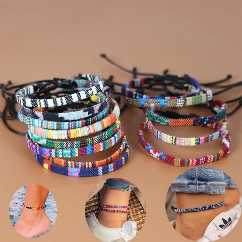 Bohemia Embroidery Woven Anklets Surfer Beach Anklet Set for Women Men Adjustable Rope Braided Anklets Handmade Festival Jewelry