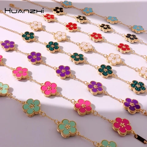 HUANZHI Colorful Butterfly Flower Heart Bracelet for Women Girl Link Chain Adjustable Double Sided Party Charm Jewelry Wholesale