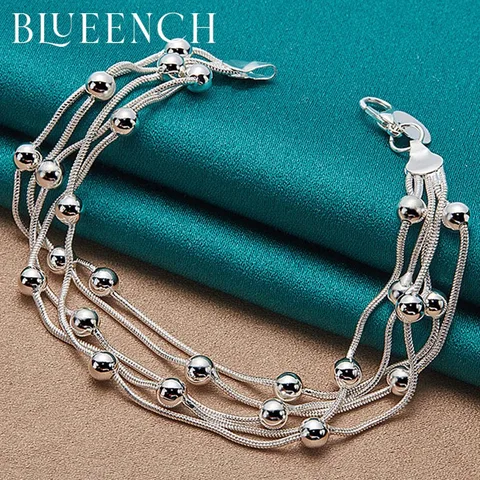 Blueench 925 Sterling Silver Multiple Chain with Ball Beads Bracelet for Women Fashion Personality Jewelry