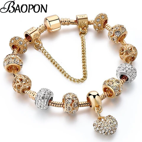 BAOPON Vintage Silver Color Charms Bracelets for Women DIY Crystal Beads Brand Bracelets Women Pulseira Jewelry