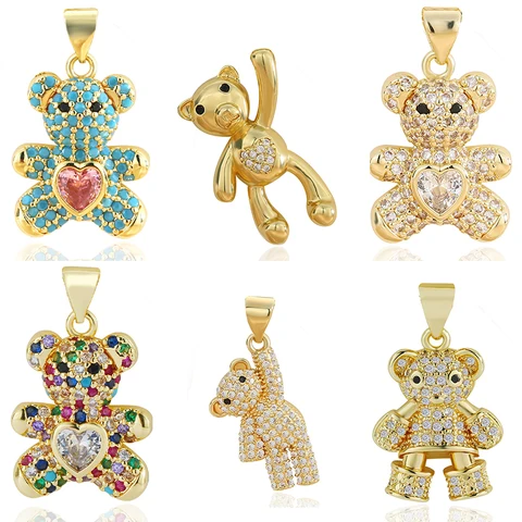 Cute Bear Pendant Jewelry Making DIY Bracelet Necklace Earrings Accessories Cute Charm Fashion Popular Material Copper Plated