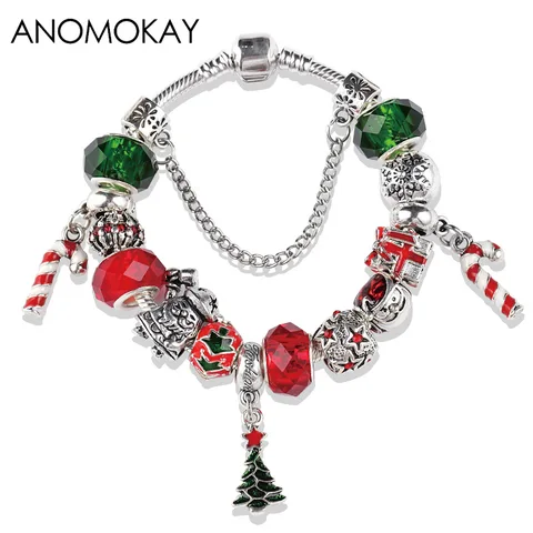Christmas Tree Snowman Crutch Bracelet Charm for Women Diy Crystal Enamel Beads Bracelet New Year Xmas Jewelry Gift