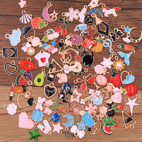 30Pcs Random 20-100 Styles Mix Size 5 Color Alloy Metal KC Gold Drop Oil Charms Pendant For DIY Bracelet Necklace Jewelry Making