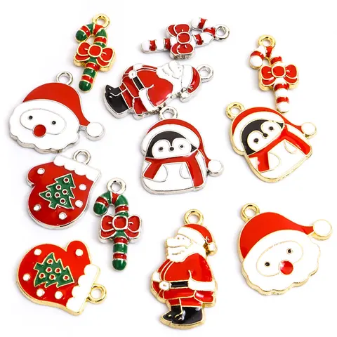 10pcs Christmas Series Charms Santa Claus Christmas Tree Penguin Candy Cute Trinkets Accessories DIY Necklace Earrings Pendants