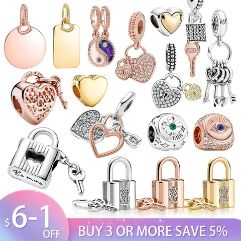 HOT New 925 Sterling Silver Padlock & Key Dangle Charms Fit Original 925 Bracelet Beads for Women Fine Diy Jewelry Gift
