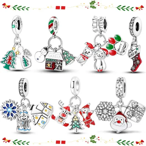Charms Silver Plated Christmas Pendants Fit Original Pandora Bracelet DIY Santa Claus Elk Dangle Charms Jewelry