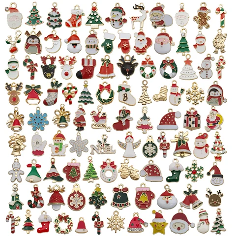 Random 20Pcs 10- 40 Style Alloy Metal Christmas Drop Oil Charms Gold Color Pendant For DIY Bracelet Necklace Jewelry Making