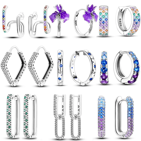 Classic 2023 Earrings 925 Sterling Silver Colorful CZ Hoop Earrings for Women Birthday Party Wedding Engagemen Gift Jewelry