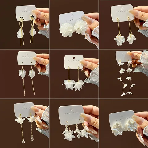 Exaggerated White Arcylic Flower Earrings Clear Crystal Flowers Petal Big Drop Dangle Earrings for Women Statement Jewelry Gifts