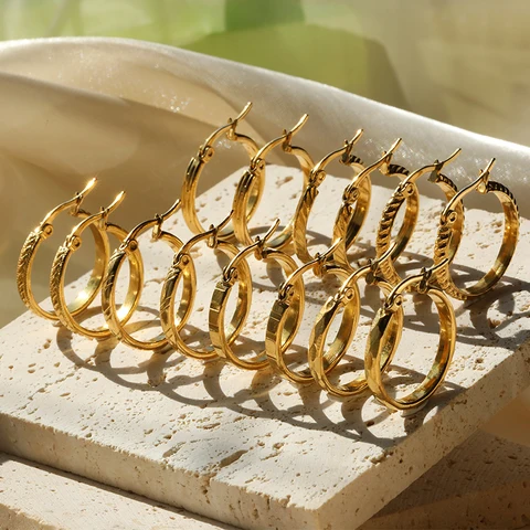 Geometric Hoop Earrings Set For Women Stainless Steel Round Circle Earrings Fashion Jewelry Gift Wholesale Free Shipping