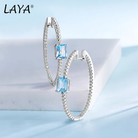 LAYA Romantic Natural Sky Blue Topaz Real 925 Sterling Silver Statement Earrings Fine Jewelry Earrings for Women Wedding Party