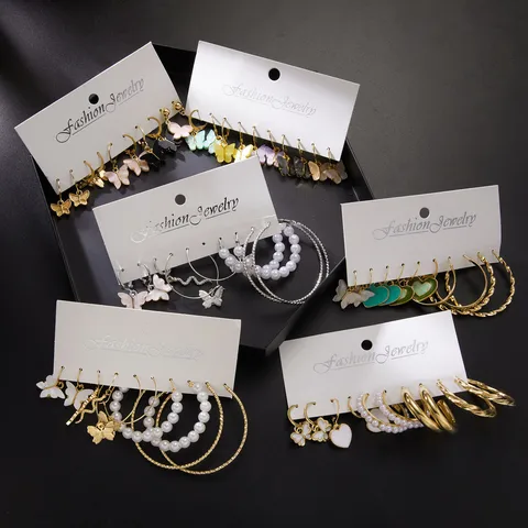 Trendy Big Hoop Earrings Set For Women Butterfly Pearl Rhinestone Resin Circle Earring Bride Wedding Girl Party Jewelry Gifts