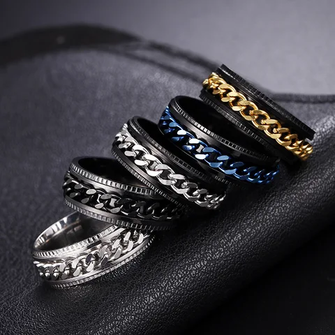 Rotate Rotating Anxiety Fidget rings Titanium Stainless Steel Chain Spinner Finger Ring For Men Blue Gold Color Black Punk Rock