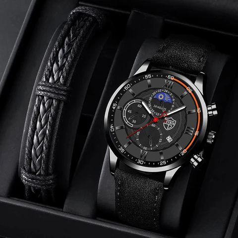 Fashion Mens Sports Watches Man Business Quartz Wristwatch Luxury Black Leather Bracelet Men Casual Luminous Clock Watch