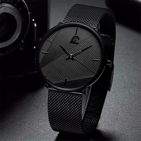 Minimalist Mens Fashion Ultra Thin Watches Simple Men Business Stainless Steel Mesh Belt Quartz Wrist Watch Relogio Masculino