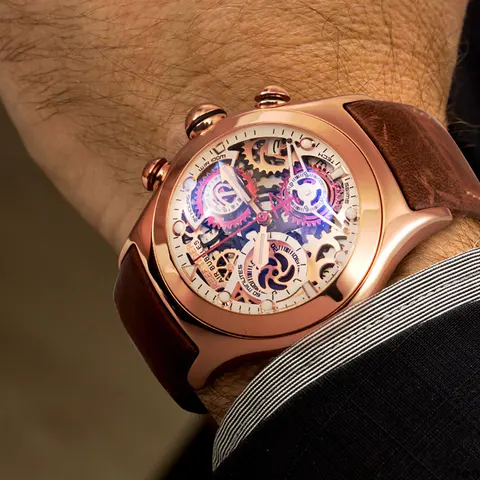 Reef Tiger/RT Chronograph Sport Watches for Men Skeleton Dial with Date Three Counters Luminous Rose Gold Unique Watches RGA792
