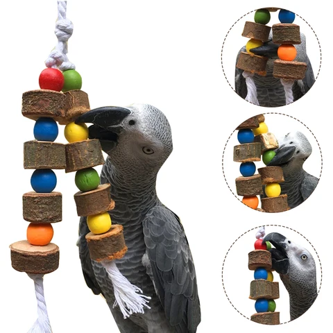 Natural Wooden Parrot Bird Toy Wood Parrot Chew Toy Chewing Cardboard Destroy Birds Toy Bird Cage Decoration Bird Supplies