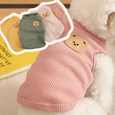Bear Vest Pet Dog Clothes Cat Solid T-shirt Clothing Dogs Thin Small Fashion Chihuahua Cotton Summer Green Breathable Girl Pug