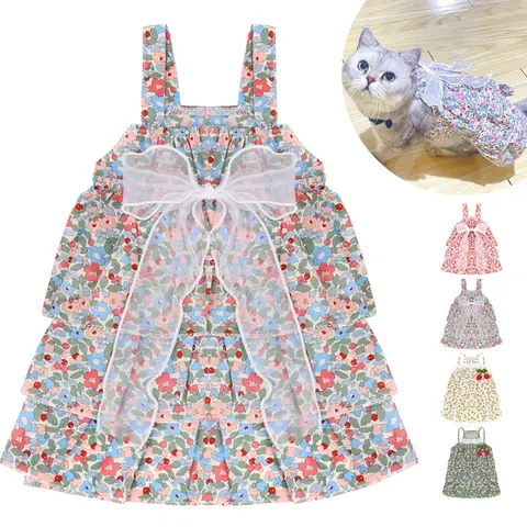 Pet Supplies Small Dog Flower Princess Dress Kitty Teddy New Pet Clothes Cute Dog Skirt Summer Thin Pet Accessories