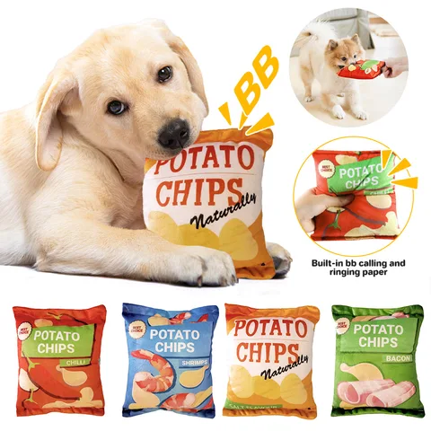 Dog Toy Training Dolls With Sound Pets Entertainment Potato Chips Stuffed Pillow Simulated Cat Bread Interactive Chewing Toys