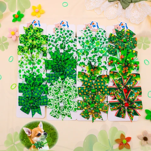 6PCS/SET St. Patricks Day Dog Collar Dog Bowtie Dog Necklace Decorated Shamrock Four Leaf Adjustable Dog Collar for Dog Supplies