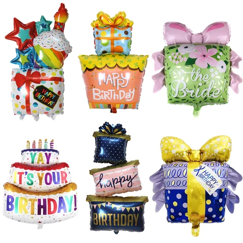 Happy Birthday Gift Box Foil Balloons Birthday Party Decoration Birthday Gift Box Cake Aluminum Film Balloons