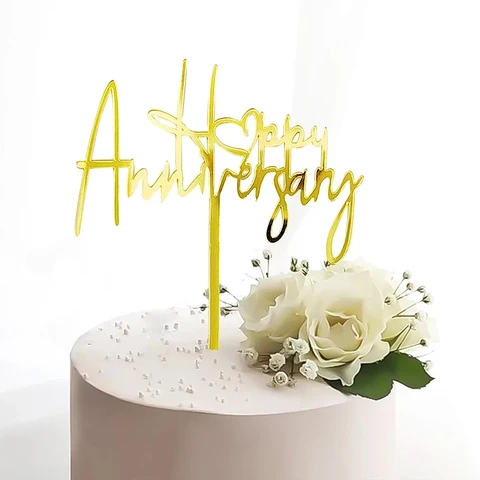 New Happy Anniversary Cake Topper Gold Acrylic Anniversary Cake Topper for Birthday Wedding Anniversary Party Cake Decorations