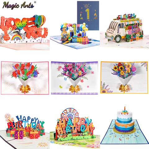 3D Pop-Up Cards Flowers Birthday Card Anniversary Gifts Postcard Maple Cherry Tree Wedding Invitations Greeting Cards