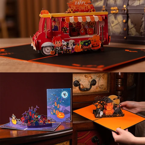 Hallowmas Invitations Gift Card 3D Halloween Pop Up Greeting Cards for Kids Party