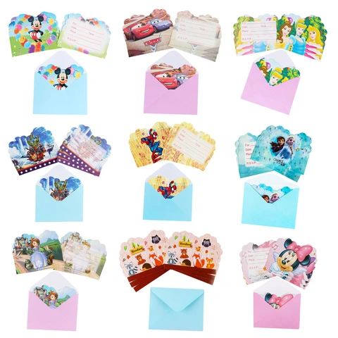 Disney Party Invitation Card Minnie Mickey Mouse Frozen Princess Avengers Card Envelope Kids Birthday Party Baby Shower Supplies