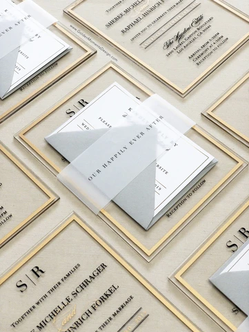 The Frame's Collection with Custom Vellum Belly Band & RSVP Cards + envelopes/ Clear Frost Acrylic Wedding invitations,100pcs