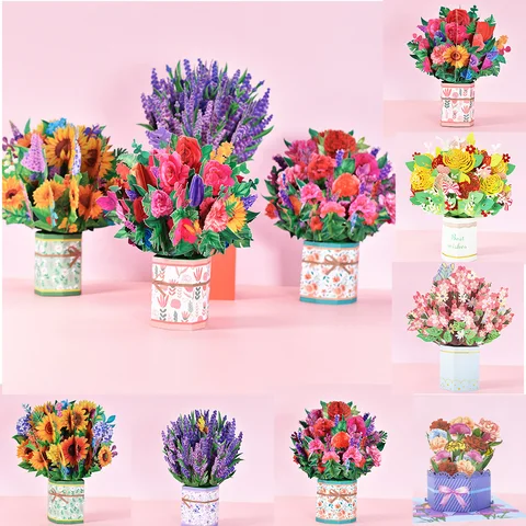 3D Pop UP Flower Greeting Cards Birthday Invitation Card Handmade Butterfly Thank You Postcard Wife Mom Girlfriend Teacher Gift