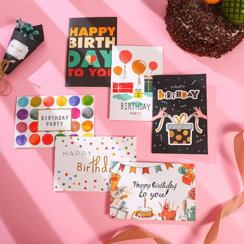 6sets Happy Birthday Cards Cute Balloon Assorted Greeting Card with Envelopes and Stickers Birthday Party Folded Gift Cards