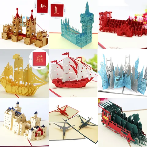 Pop UP 3D Birthday Cards World Attractions Card Business Invitation Boy Gift Greeting Tourist Postcard for Boyfriend Dad Present
