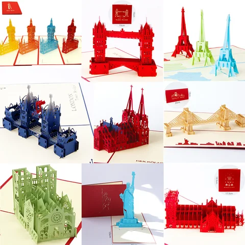 3D Pop Up Gifts Card World Famous Building Birthday Party Greeting Cards Architecture Business Invitation Card Tourist Postcard