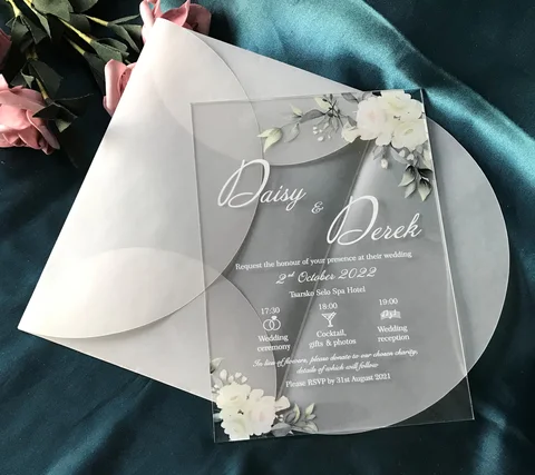 Custom Acrylic Wedding Invitation,10pcs White Rose,Peony Acrylic Invitation,Semi-transparent Envelope,White Flowers Invitation