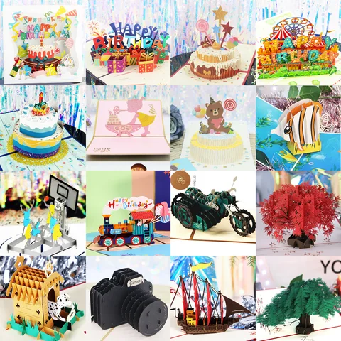 Hot 3D Pop UP Happy Birthday Cards Invitation Cake Greeting Card Business Kids Gift Tourist Postcard for Friend Dad Mom Present