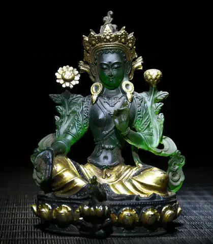 Archaize Coloured glaze Green tara Buddha crafts statue