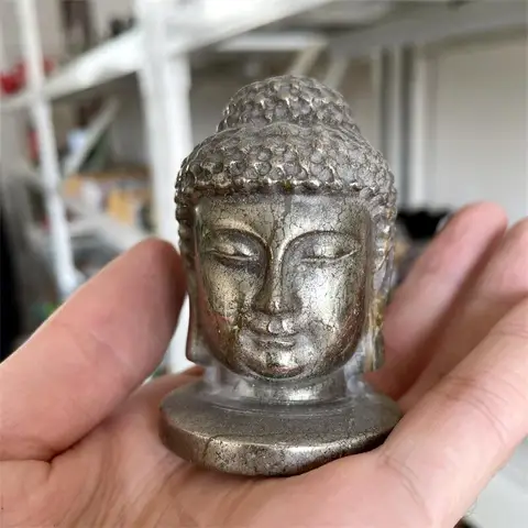 6cm High Quality Pyrite Crystal Handmade Carved Buddha Head Polished Powerful Statue For Home Decoration Gift