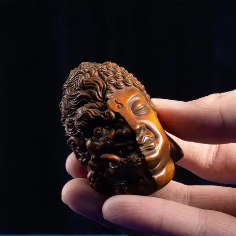 Devil and Buddha wooden buddha statue Buddha Head Devil in Hell feng Shui Wood Carving handmade head statue Sculpture Modern Art