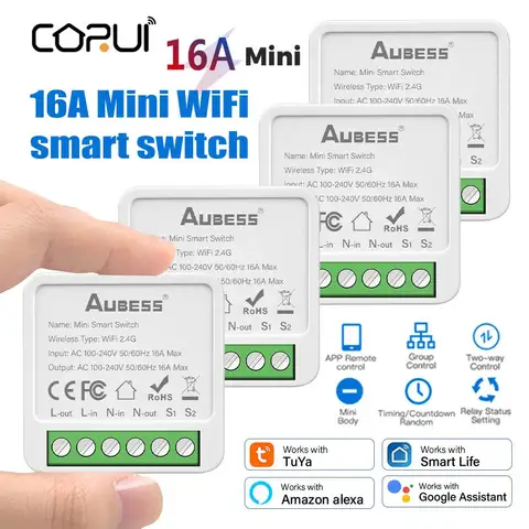 Tuya Wifi Smart Switch Mini Timer Wireless Switches Smart Home Remote Vioce Group Control Smart Life Google Home Alexa