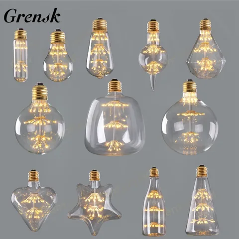 E27 LED Non- Dimmable Bulb Vintage Starry Lamp Vintage led 4W 2200K diamond lightbulb Decorative Christmas Firework Lamp