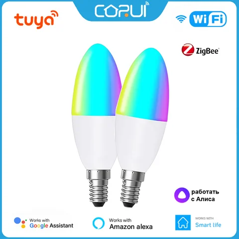 CORUI Tuya Zigbee/WIFI E14 LED Light Bulb Smart RGB+CCT Candelabra Lightbulb For Smart Life Alexa Google Home Yandex Alice