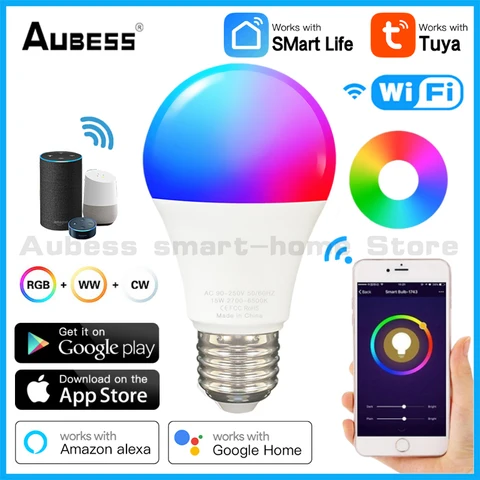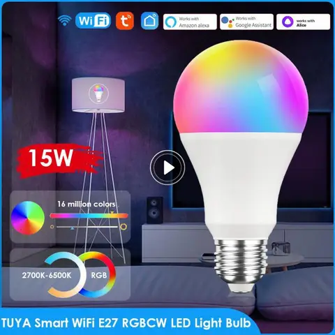 Tuya Smart WiFi Led Bulb 9/15W RGBCW LED Light Dimmable Lightbulbs Works With Alexa Google Home Voice Control Magic LED Lamp