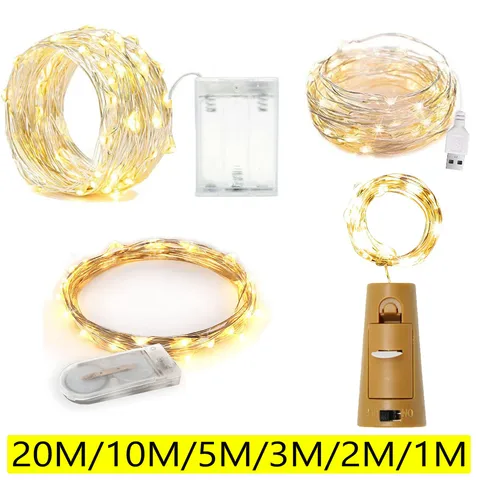 2/5/10M LED Copper Wire Fairy Lights Battery Powered Led String Lights Party Wedding Christmas Decoration USB Wine Bottle Cork