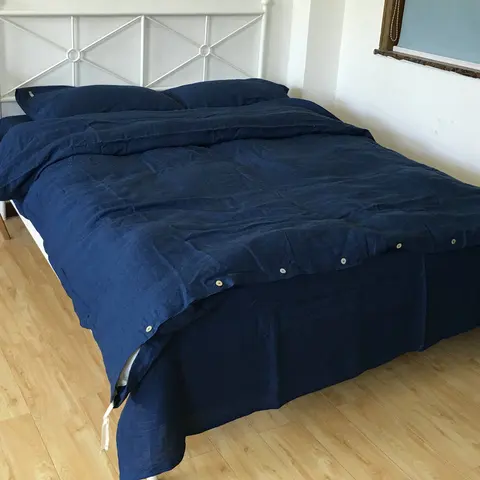 1 set /4 piece Waterwash Navy 100% Pure Line Bedding Sets Linen sheets Free Shipping
