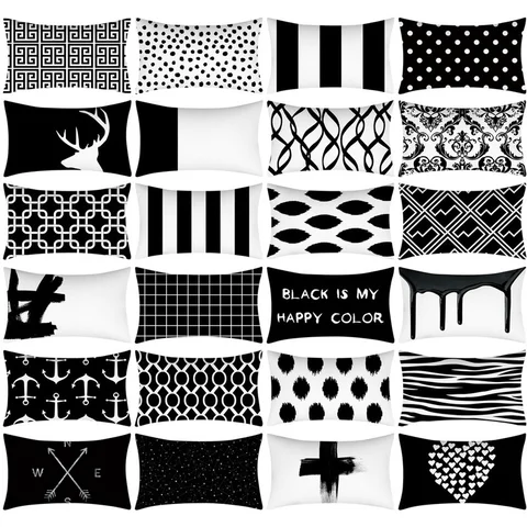 Rectangular Pillowcase Sofa Decorative Pillow Geometric Print Cushion Cover Simple Style Black and White Pillowcase