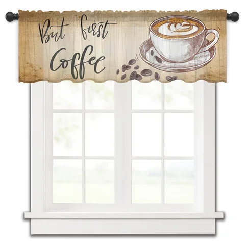 Coffee Coffee Beans Retro Short Tulle Curtain Bedroom Sheer Window Screening Drapes for Kitchen Living Room Decor Voile Curtains
