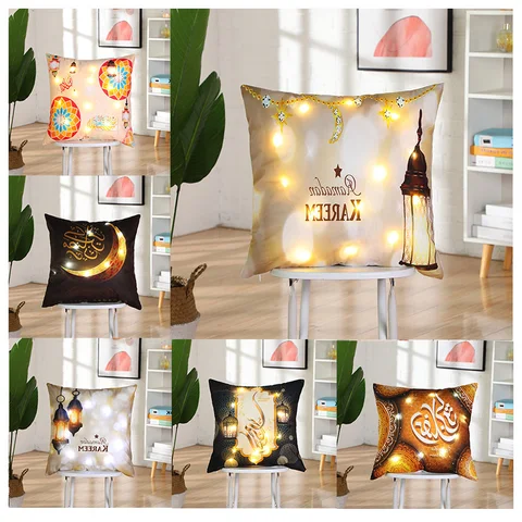 LED Ramadan Festival Pillow Case Peach Skin Patterns Light Strip Holiday Gifts Luminous Pillowcase Muslim Style Cushion Cover