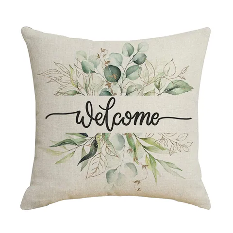 Throw Pillow Cover Spring Letter Leaf Linen Print Cushion Cover Sofa Office Pillow Zippered Pillow Cases Standard Size 45cm